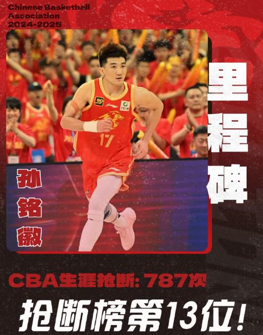 此役,廣廈球員孫銘徽CBA生涯搶斷總數合計787次,刷新個人里程碑,位列CBA歷史搶斷榜第13位!