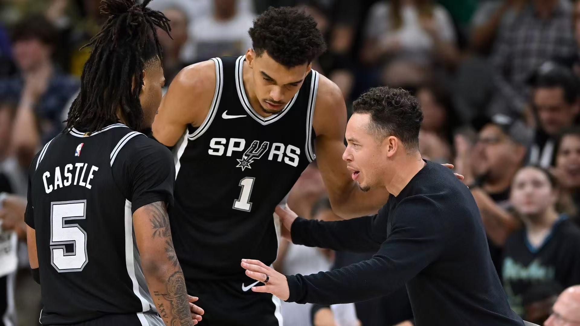 所以38歲的米奇就成了最優選擇——在戰績壓力來臨前,他有足夠的時間磨煉執教水平(就像馬刺年輕人們提升球技一樣),在此期間,他還能用自己擅長的溝通能力和新老隊員們打成一片。從2019年正式成為馬刺助教開始,米奇就經常陪球員們在場訓練,提供各種細節指導和臨場建議,懷特、穆雷、文班、卡斯爾都是受益者。在成為代理主帥后,米奇依然“不忘本”,繼續在訓練場上陪伴球員。