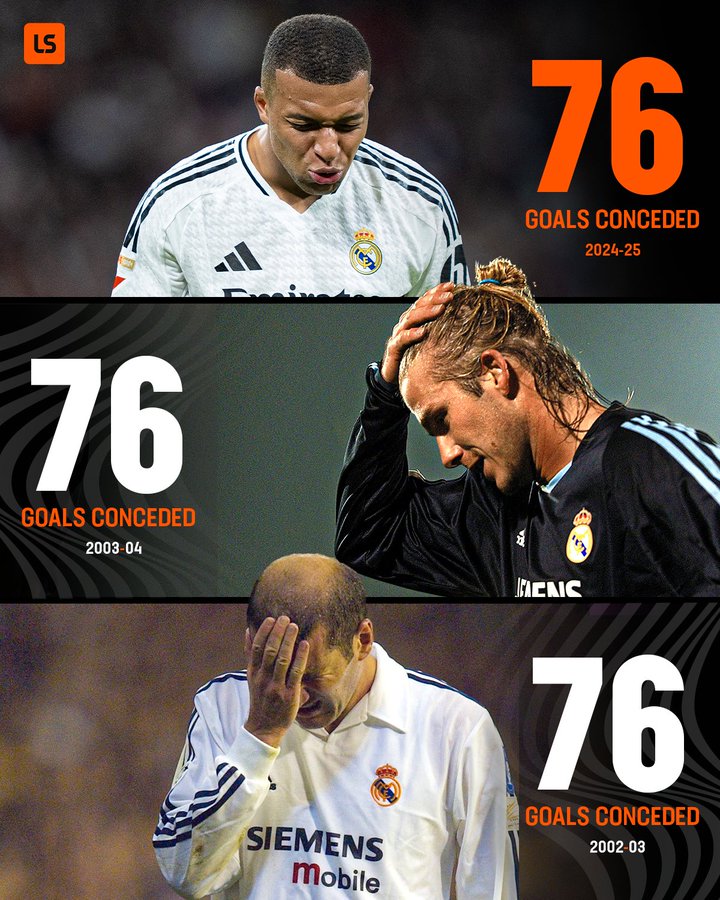 來自于足球媒體LIVESCORE的統計顯示,皇馬本賽季的總失球數,已經追平了球隊在21世紀的最高丟球紀錄--76球,而這個紀錄此前曾經03/04以及02/03賽季有過出現。
