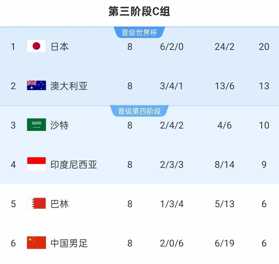 目前,國足排名C組倒數第一,如果本場比賽國足在客場拿不下印尼,將徹底無緣小組前四,提前告別2026年世界杯。