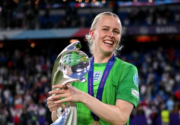 2025年7月27日的歐洲杯女足決賽點球大戰,漢普頓作為英格蘭主力門將,神奇的撲出兩粒點球,幫助英格蘭擊敗西班牙,成功衛冕女足歐洲杯冠軍。