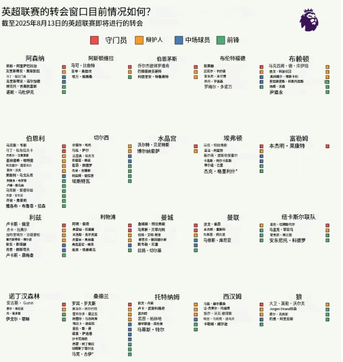 以下是英超2025年夏季轉會窗口期間已經進行的交易(截至目前):