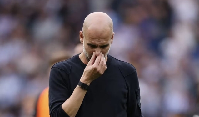 目光低垂,雙手深插褲袋,當達倫·英格蘭的哨音尚在空中回蕩,佩普·瓜迪奧拉已拖著沉重的步伐,獨自踏上運通球場的草坪。