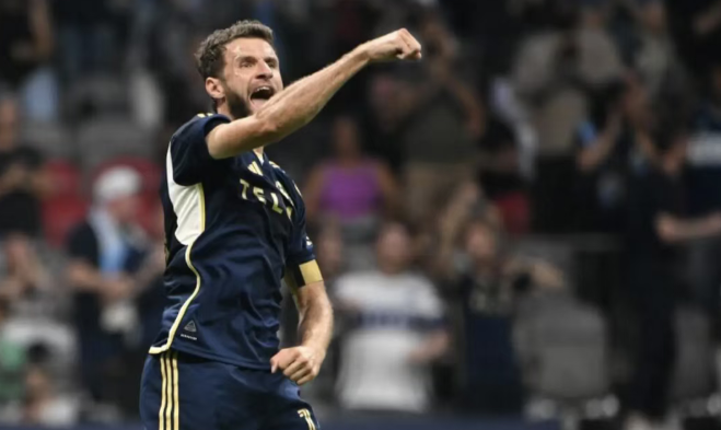 而就在數(shù)小時(shí)前,相距五千英里之外的溫哥華,穆勒身披白浪隊(duì)?wèi)?zhàn)袍,置身于一場截然不同的賽事:加拿大錦標(biāo)賽。他最終因輪休未登場,目睹球隊(duì)以4比0橫掃弗吉FC——這支2019年才成立的加拿大超聯(lián)球隊(duì)。而他面前,又一座決賽獎(jiǎng)杯正在招手,一如他漫長職業(yè)生涯中無數(shù)次經(jīng)歷的那樣。