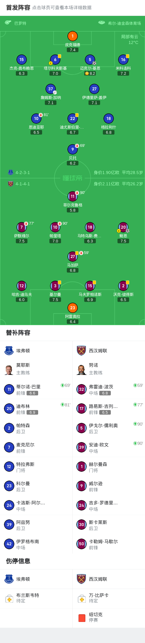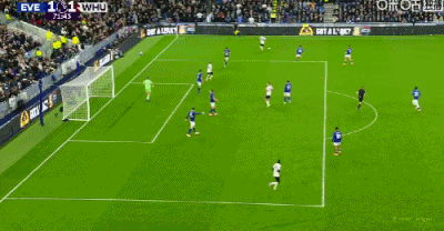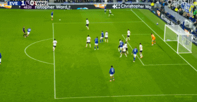 第18分鐘,邁克爾-基恩禁區躍起頭球破門,埃弗頓1-0西漢姆聯