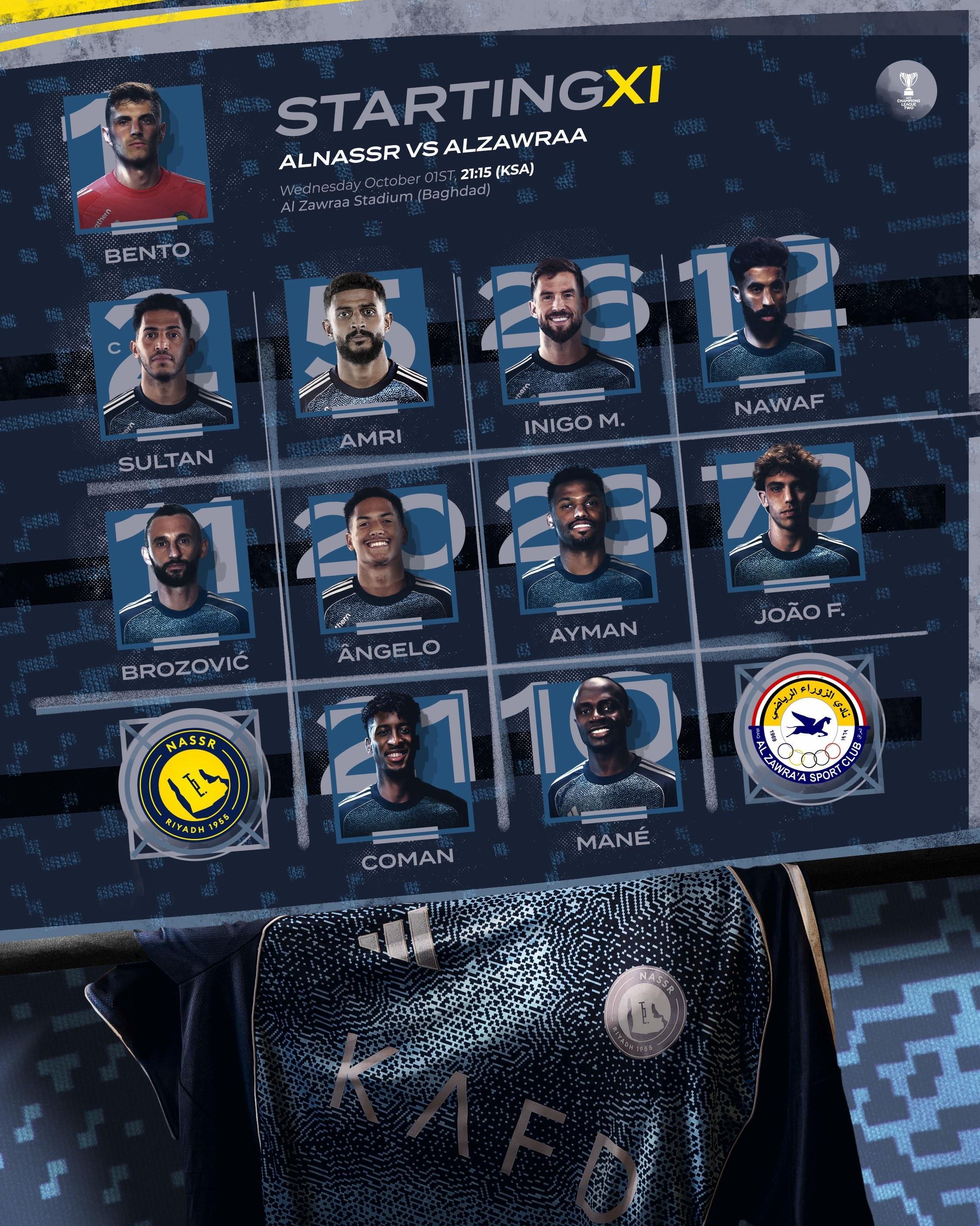 北京時間10月2日2:15,亞冠二級小組賽D組第2輪,利雅得勝利作客挑戰祖拉,賽前雙方首發出爐。