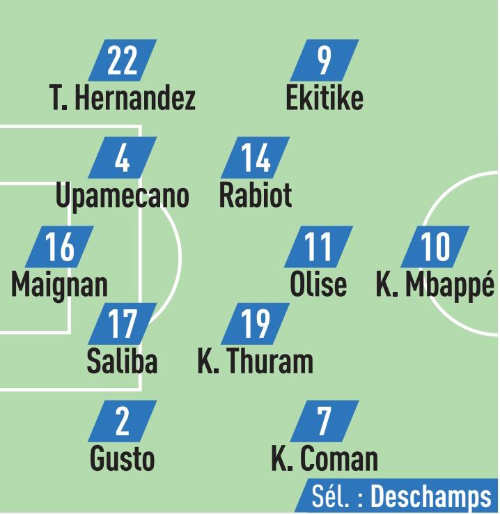 北京時間明天凌晨02:45,法國將迎來世界杯歐洲區預選賽第7輪主場對陣阿塞拜疆的比賽,賽前,《隊報》對法國隊的首發陣容進行了預測,其中姆巴佩、埃基蒂克、奧利塞在列。