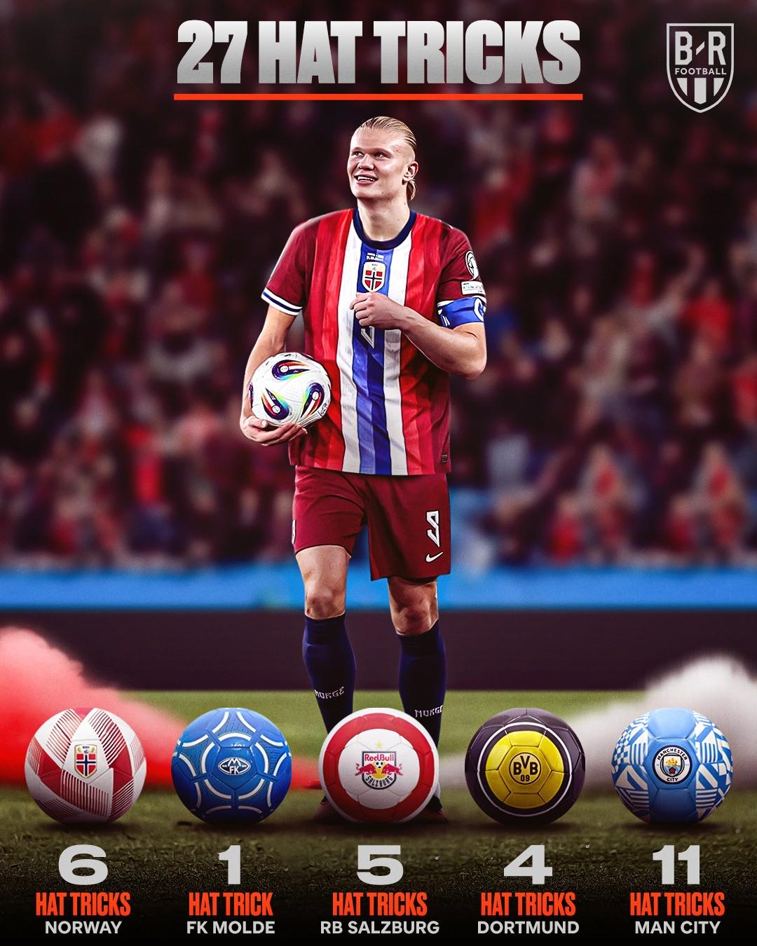 本場比賽,挪威前鋒哈蘭德完成帽子戲法,據統計,這是他在挪威國家隊完成的第6次帽子戲法,這也是哈蘭德職業生涯完成的27次帽子戲法。