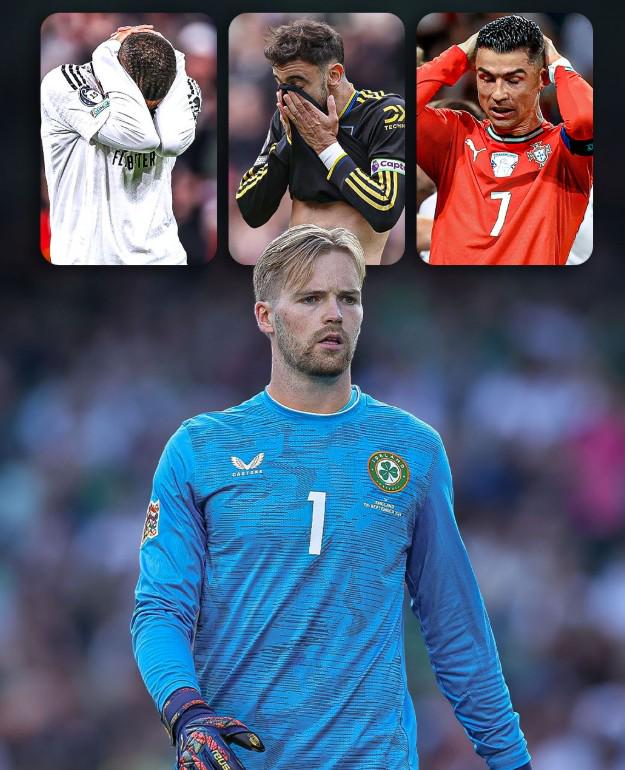 愛爾蘭門將凱萊赫在世預(yù)賽(愛爾蘭0-1葡萄牙)撲出C羅的點(diǎn)球,賽后他在社媒曬慶祝照。