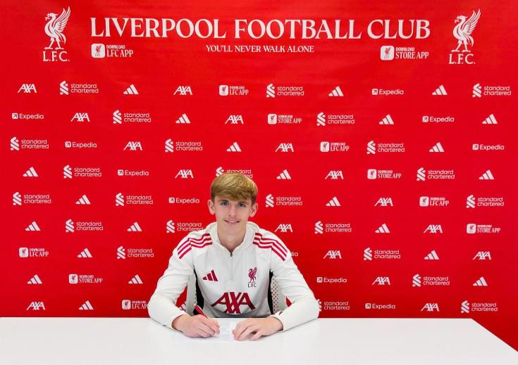 15歲的前曼城青訓門將阿爾菲-杜利(Alfie Dooley)在社媒發布了自己的簽約照片,并配文:“很高興簽約利物浦。”