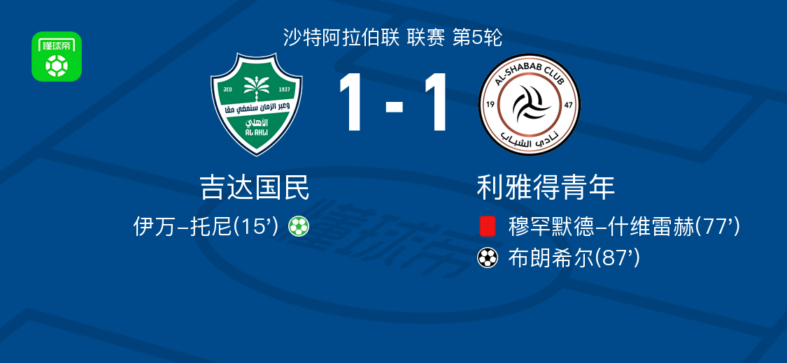 北京時間10月18日沙特阿拉伯聯(lián) 聯(lián)賽 第5輪,吉達國民主場對陣利雅得青年。吉達國民伊萬-托尼破門。利雅得青年布朗希爾破門。最終比分吉達國民 1-1 利雅得青年。