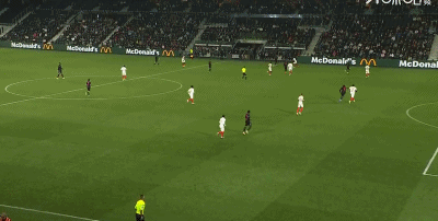 第30分鐘,比雷思橫傳,法蒂門前頭球頂偏