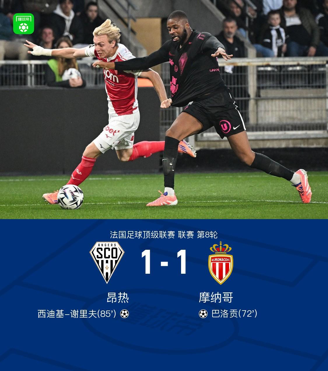 北京時間10月19日,法國足球甲級聯賽第8輪展開較量,昂熱坐鎮主場迎戰摩納哥。比賽中,摩納哥率先打破僵局,巴洛貢接南野拓實助攻攻入一球。此后昂熱展開反擊,拉奧-利索亞送出助攻,西迪基-謝里夫破門得手,幫助球隊扳平比分。最終雙方以1比1握手言和。