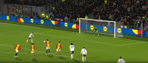 第42分鐘,特維特開出任意球,蘇雷折射破門,前進之鷹1-1維拉