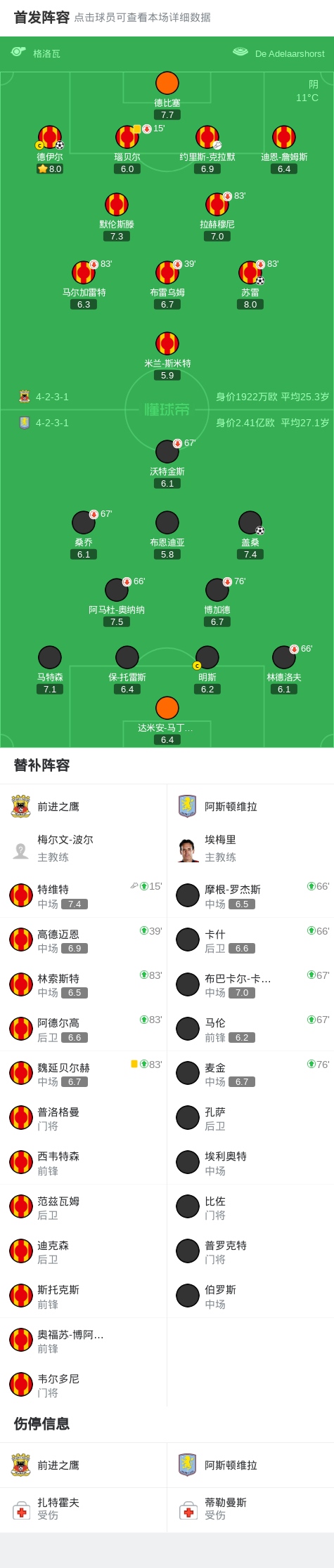 第63分鐘,約里斯-克拉默助攻德伊爾破門,前進之鷹2-1維拉