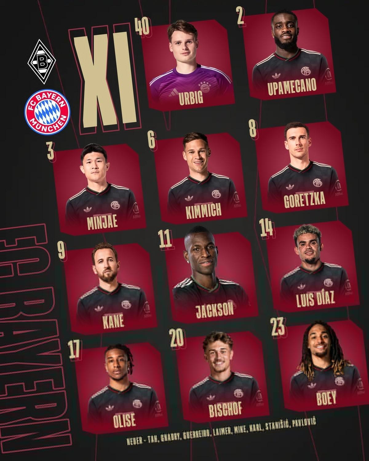 北京時間10月25日21:30,德甲第8輪繼續進行,拜仁慕尼黑作客普魯士公園球場挑戰門興格拉德巴赫,本場主裁判為施特格曼,賽前雙方首發出爐。