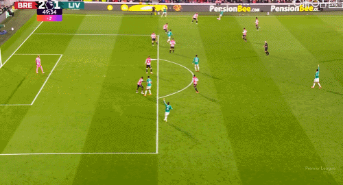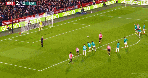 第58分鐘,瓦塔拉禁區左側帶球內切,被范戴克在大禁區線內踢倒,隨后VAR介入,主裁判判給布倫特福德點球,伊戈爾-蒂亞戈主罰命中,3-1!