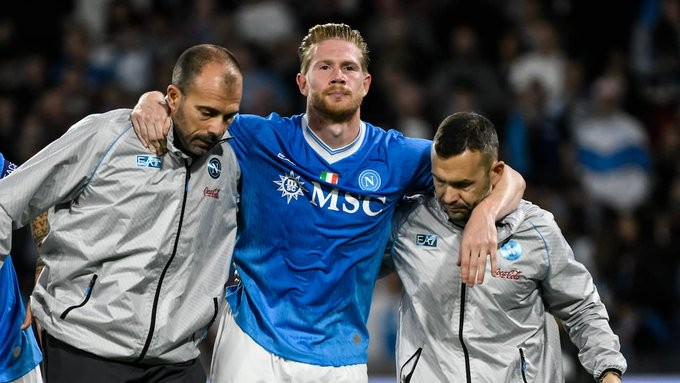 在對(duì)陣國(guó)際米蘭的比賽第37分鐘時(shí),德布勞內(nèi)由于肌肉問題被迫要求換人,在此之前,他剛剛踢進(jìn)了一粒點(diǎn)球,打破了僵局,他痛苦的表情立刻讓人擔(dān)心情況不妙,周一進(jìn)行的儀器檢查證實(shí)了這些不好的預(yù)感。