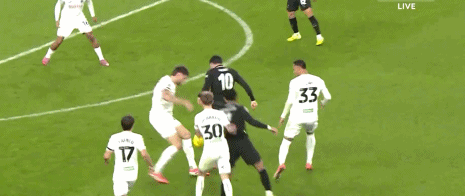 第48分鐘,劉易斯傳球,謝爾基準備過人被破壞