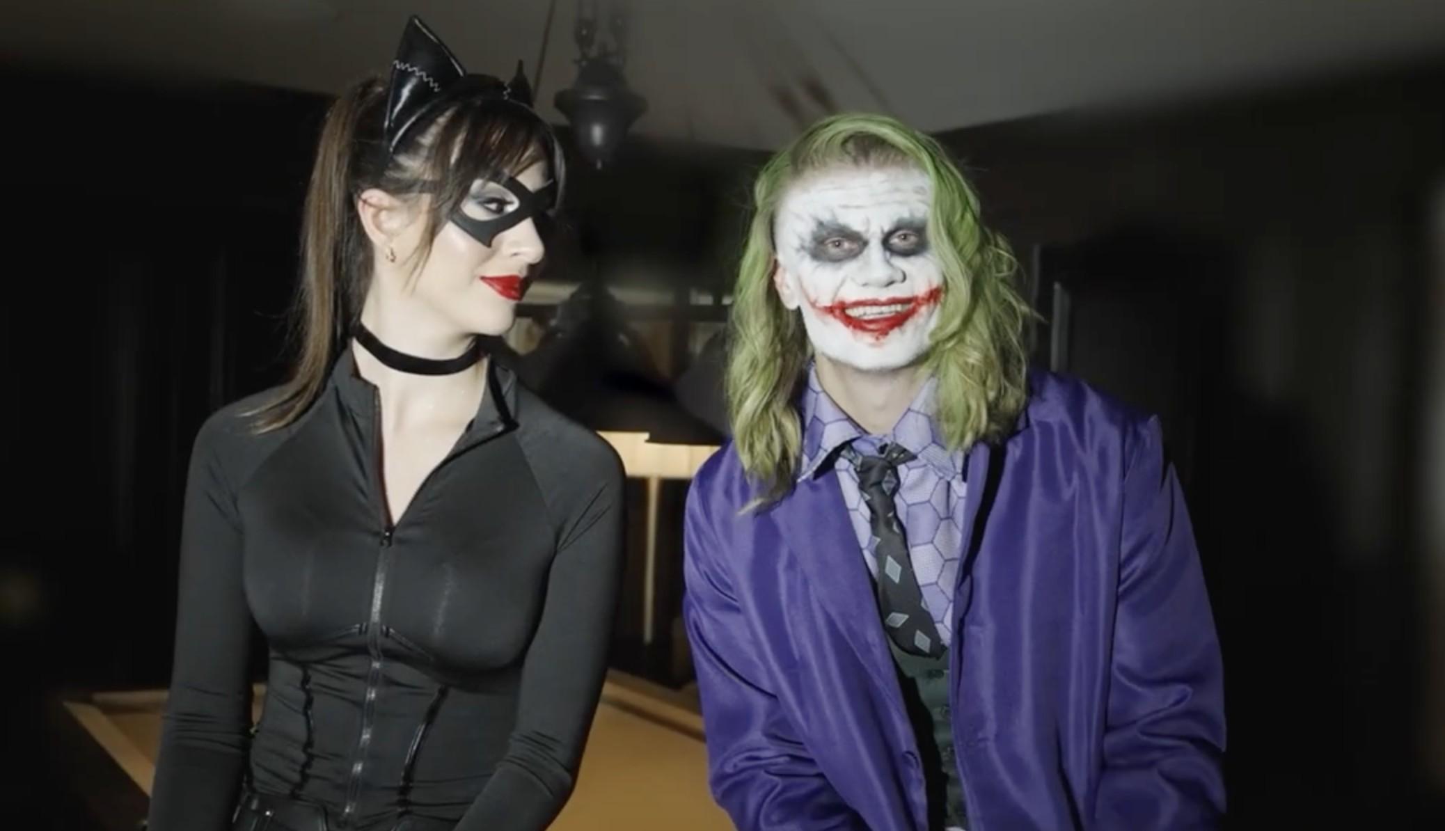 在哈蘭德回到家時,女友已經裝扮成了貓女,隨后兩人一起出門參加派對。