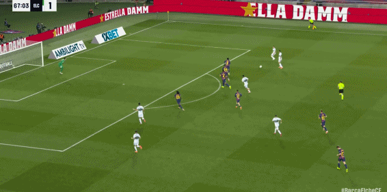 第11分鐘,埃爾切后防送禮,費爾明助攻費蘭破門,巴薩連入兩球2-0!