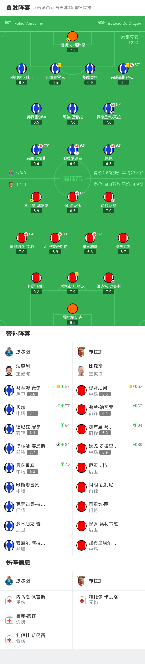 北京時間11月3日葡萄牙足球超級聯賽 聯賽 第10輪,波爾圖主場對陣布拉加。波爾圖羅德里戈-莫拉破門,博爾哈-賽恩斯破門。布拉加維克托-戈麥斯破門。最終比分波爾圖 2 - 1 布拉加。