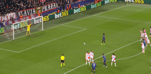 第20分鐘,薩卡內切突施冷箭,皮球被撲出