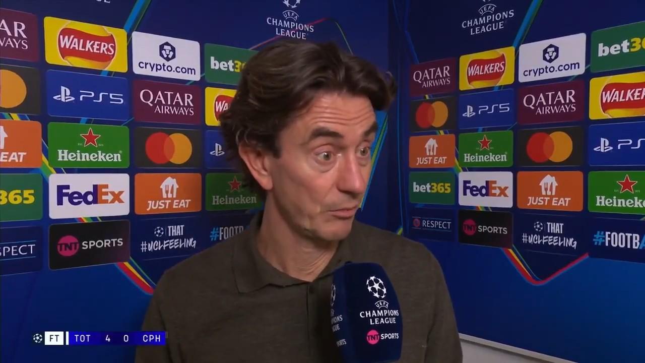 率隊(duì)在歐冠聯(lián)賽階段第4輪主場(chǎng)4-0大勝哥本哈根之后,托特納姆熱刺主教練托馬斯-弗蘭克接受了來(lái)自TNT體育的采訪。