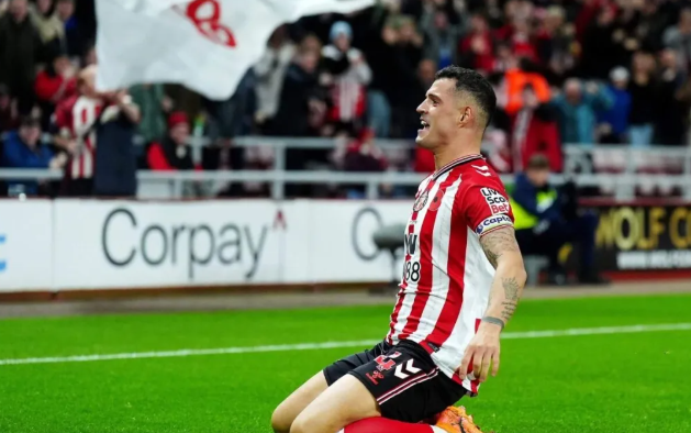 周一晚間九點剛過,格拉尼特·扎卡打進了他加盟桑德蘭后的首粒進球。他在喧騰的光明球場一角滑跪慶祝,與這座為新任隊長歡呼的球場共享此刻榮光。這位身披34號球衣、年屆33歲的球員,職業生涯再次留下閃光一筆。