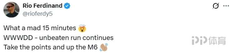 本輪英超,熱刺2-2戰平曼聯。曼聯名宿費迪南德在社媒發文評論道:“瘋狂的15分鐘,3勝2平,曼聯的不敗延續。收下分數并爭取延續至第6場。”