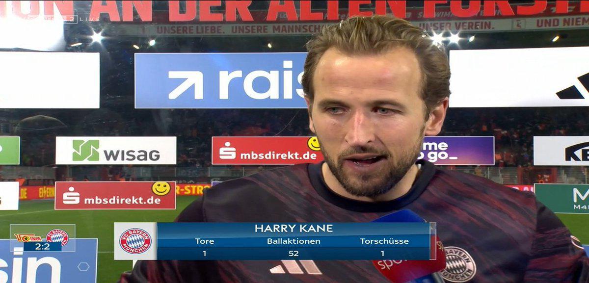 在客場2-2戰平柏林聯合,拜仁開季16連勝的紀錄被終結的賽后,本場比賽打入絕平進球的拜仁前鋒哈里-凱恩接受了采訪。
