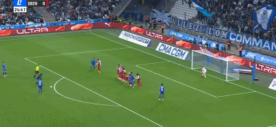 第26分鐘,戈梅斯弧頂任意球轟門得分,門將撲救失誤脫手,馬賽1-0