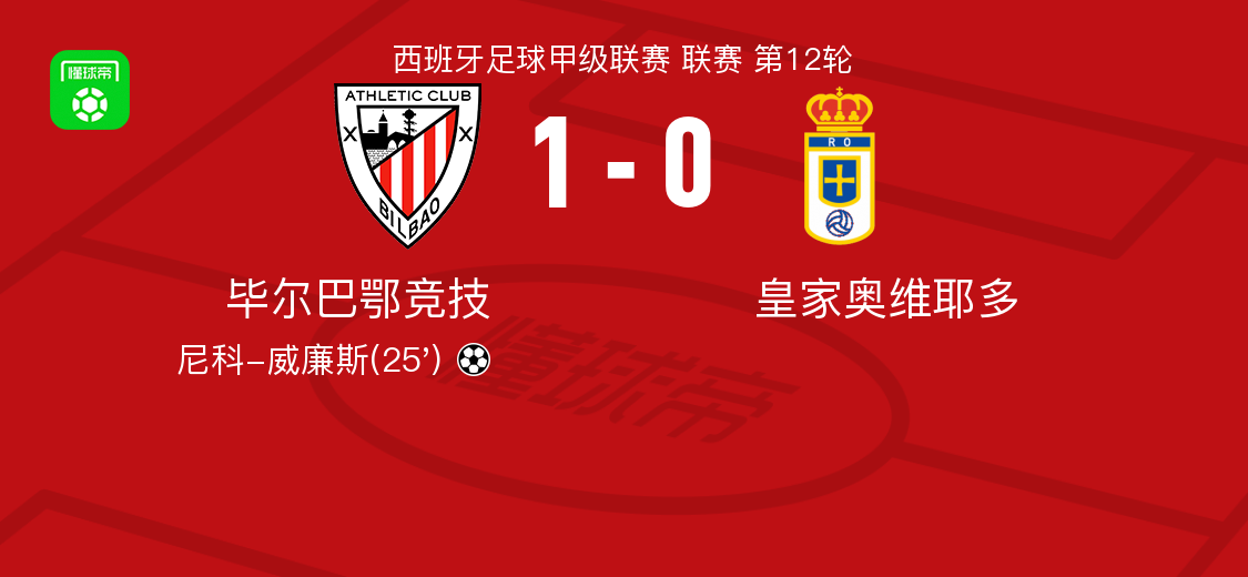 北京時間11月9日,西班牙足球甲級聯賽第12輪展開較量,畢爾巴鄂競技坐鎮主場迎戰皇家奧維耶多。比賽中,拉波爾特送出助攻,尼科-威廉斯破門得分,幫助球隊取得領先。憑借此次進球,畢爾巴鄂競技最終以1-0戰勝對手,全取三分。