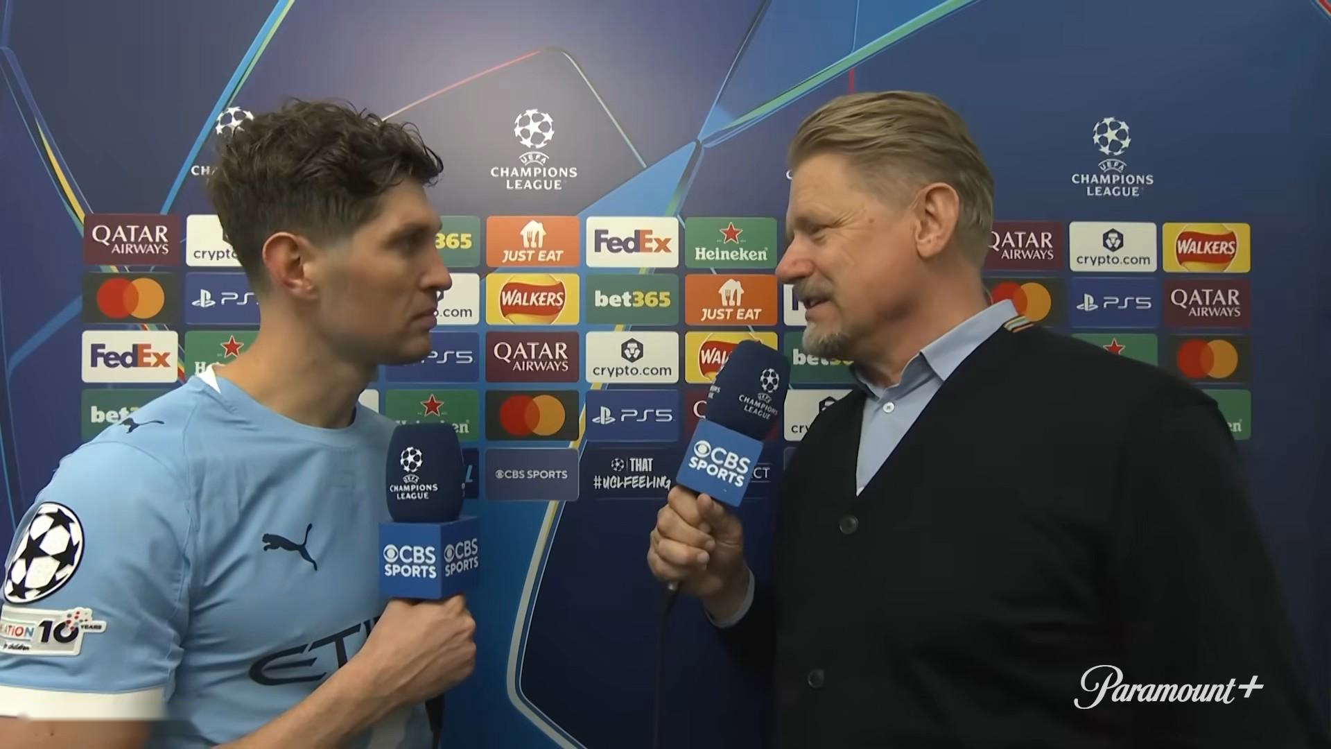 本賽季歐冠聯賽階段第4輪,曼城主場4-1戰勝多特蒙德。曼城后衛斯通斯接受了CBS體育的賽后采訪。