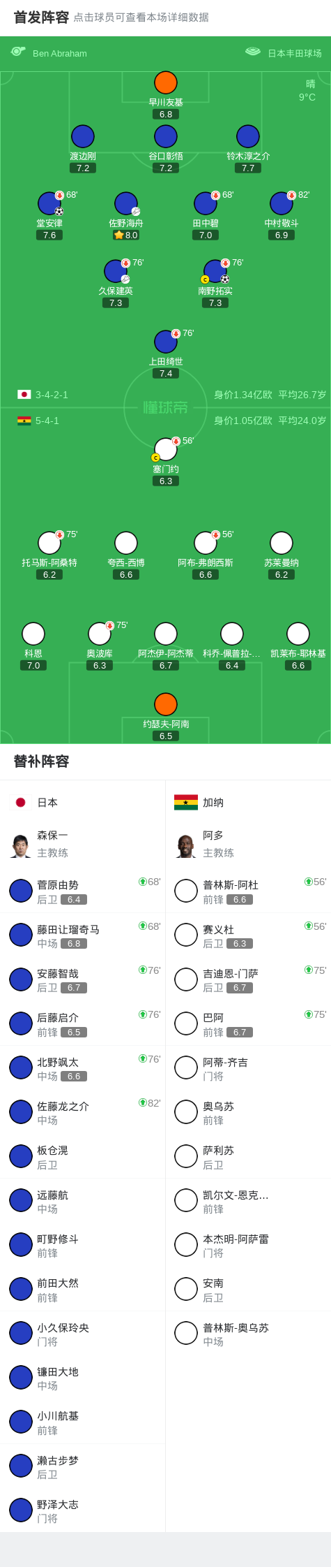 北京時(shí)間11月14日麒麟挑戰(zhàn)杯賽事,日本對(duì)陣加納。上半場(chǎng)佐野海舟助攻南野拓實(shí)單刀破門,下半場(chǎng)久保建英助攻堂安律破門。最終比分日本 2-0 加納。
