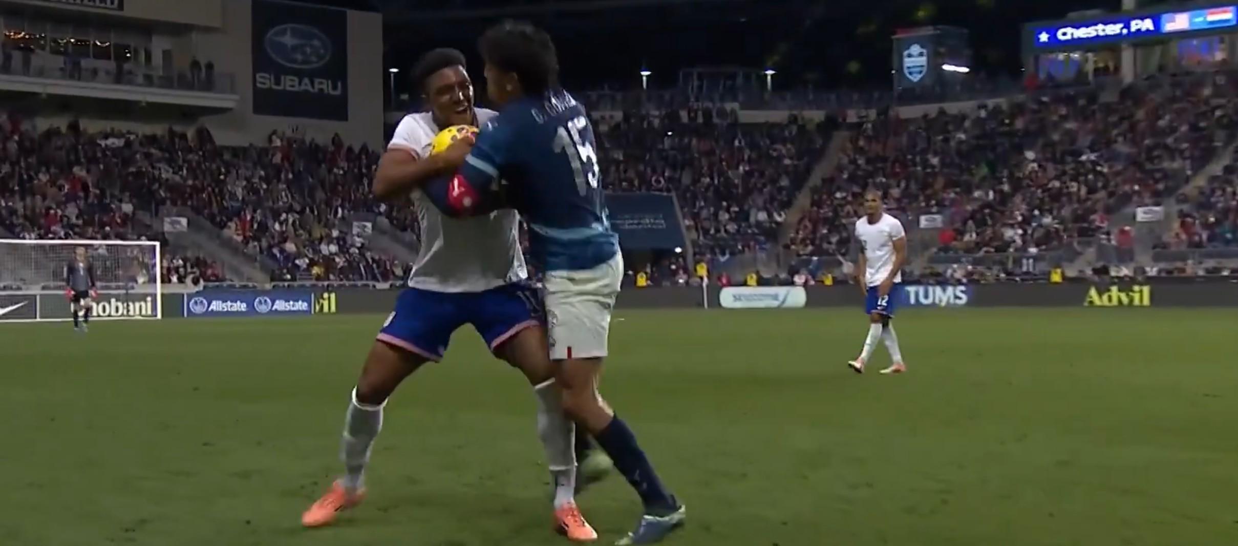北京時間11月16日的國際友誼賽,美國隊憑借雷納和巴洛貢的進球2-1力克巴拉圭。本場比賽下半場補時階段,美國隊替補登場的亞歷克斯-弗里曼和巴拉圭隊長古斯塔沃-戈麥斯在界外球發球時發生爭執,隨即引發兩隊大規模沖突。