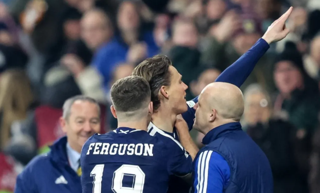 世界杯歐洲區預選賽展開多場對決,5隊晉級世界杯。蘇格蘭在主場迎戰丹麥。這是一場直接決定出線名額的關鍵大戰。蘇格蘭在第4分鐘就取得了進球。麥克托米奈的一腳驚天世界波進球太炸裂了。直到下半場丹麥才扳平比分。霍伊倫點球破門。隨后,拉斯穆斯-克里斯滕森犯規兩黃變一紅被罰下,導致丹麥少一人作戰。尚克蘭在第78分鐘進球幫助蘇格蘭再次領先。雖然多古迅速扳平比分。但是,在補時階段,丹麥崩盤了。蒂爾尼和麥克萊恩接連進球。最終蘇格蘭4-2擊敗丹麥,在積分榜上超越丹麥,升到第1,直接晉級世界杯,創造了奇跡。