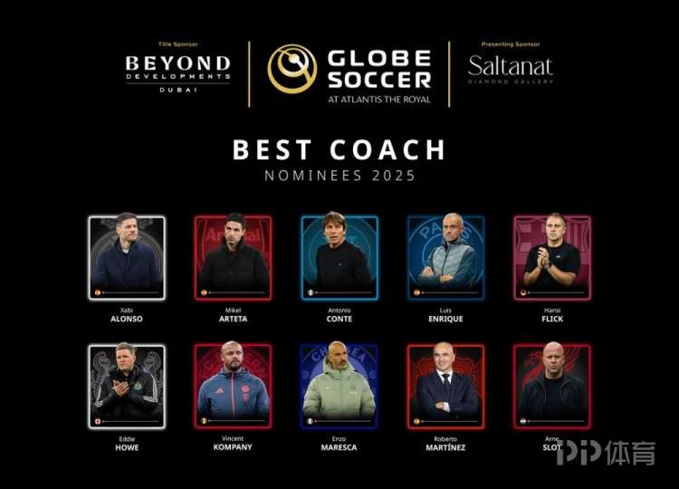 環球足球獎公布了2025年最佳主帥候選,阿隆索、阿爾特塔、孔蒂、斯洛特在列。