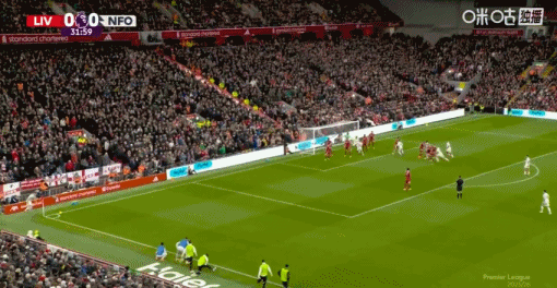 第33分鐘,森林開出角球,穆里略抽射破門!利物浦0-1落后!