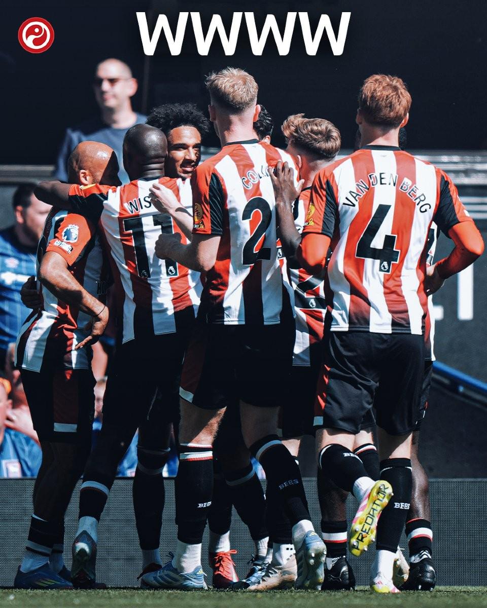 英超第36輪,布倫特福德客場1-0擊敗伊普斯維奇,近86年來首次取得頂級聯賽四連勝。